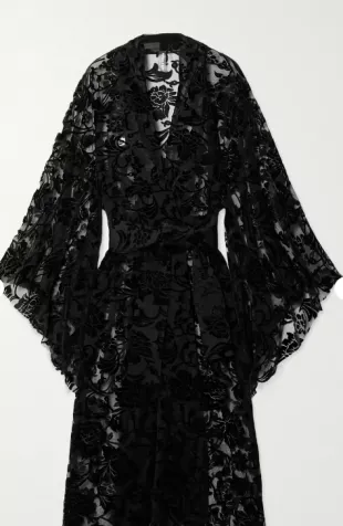 Norma Kamali Devoré-Velvet And Tulle Robe usada por Aurora de Martel (Rebecca Breeds) como se ve en Legacies (S04E18)