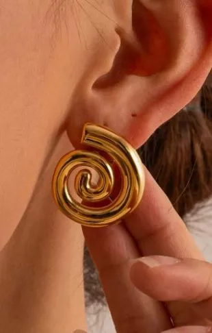 Shein Uworld 1par de pendientes en espiral de acero inoxidable chapados en oro de 18 quilates usados por Kaylor Martin como se ve en Love Island: Beyond the Villa (S01E08)