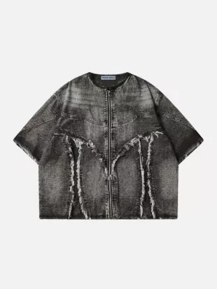Camiseta de mezclilla lavada con flecos Aelfric Eden usada por Isaiah Campbell como se ve en Love Island Games (S02E06)