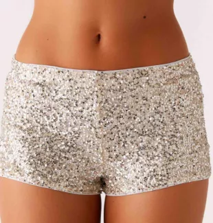 Mini pantalones cortos de lentejuelas de talle bajo Maelis exclusivos de Peppermayo usados por Lucinda Strafford como se ve en Love Island Games (S02E07)