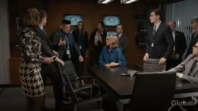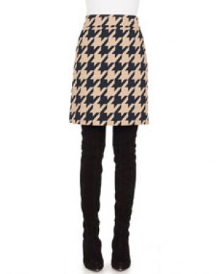 Akris Punto A Line Houndstooth Jacquard Wool Blend Skirt w / Pockets usados por Daisy Grant (Patina Miller) como se ve en Madam Secretary S05E06
