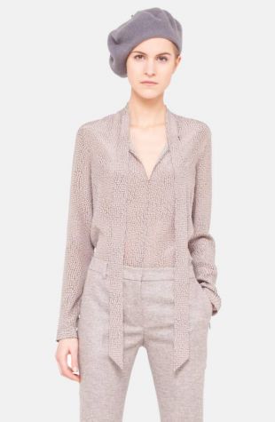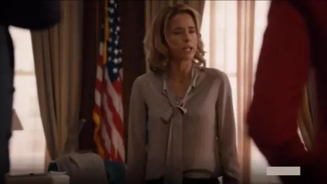 Akris Tie Neck Silk Crepe Blusa usada por Elizabeth McCord (Téa Leoni) en Madam Secretary (S01E07)