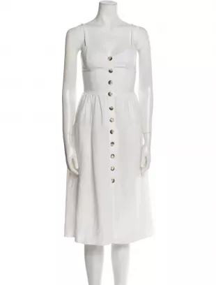 Vestido de Lino Reformation de Longitud Midi usado por Patience Lucero (Jaime Ray Newman) como se ve en Midnight, Texas (S02E01)