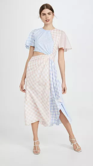 Prabal Gurung Gingham con CascAde y Cutout Detail usado por Stephanie Hollman como se ve en The Real Housewives of Dallas (S05E01)