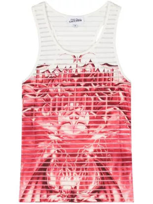 Jean Paul Gaultier La camiseta sin mangas a rayas Black Diablo usada por Larsa Pippen como se ve en The Real Housewives of Miami (T07E01)