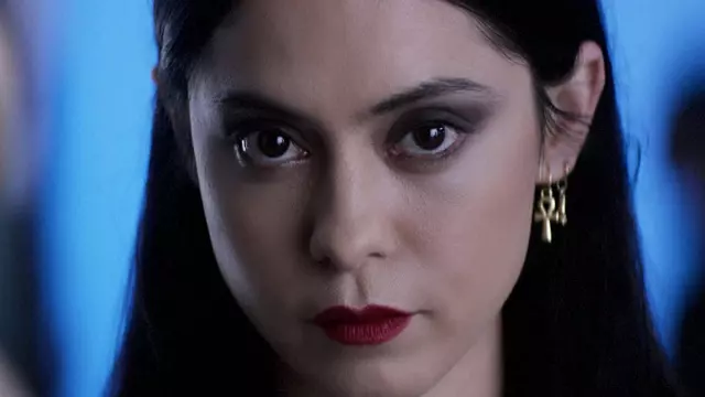 Pendientes ankh Gold Cross usados por Lisa Nova (Rosa Salazar) como se ve en el vestuario de la serie de televisión Brand New Cherry Flavor (S01E01)