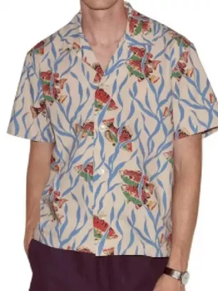 Camisa estampada de pez platónico usada por Will (Seth Rogen) como se ve en Platónico (S02E07)