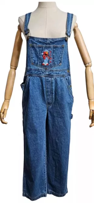 Sesame Street Elmo Vintage Rare Blue Denim Overoles de algodón usados por Chloe Fineman como se ve en Saturday Night Live (S50E07)