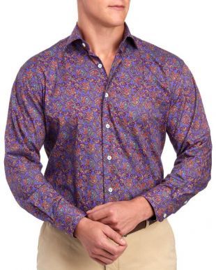 SANGI 1030 Mens Intricate Black Purple Multicolor Paisley High Collar Cuffed Shirt (Large)