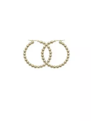 Saks Fifth Avenue 14K Yellow Gold Beaded Hoop Aretes usados por Mabel Mora (Selena Gomez) como se ve en Only Murders in the Building (S03E07)