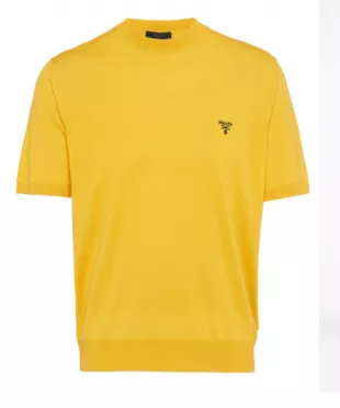 Camiseta de lana con logotipo bordado de Prada en amarillo usada por Jason Oppenheim en Selling Sunset (T07E11)
