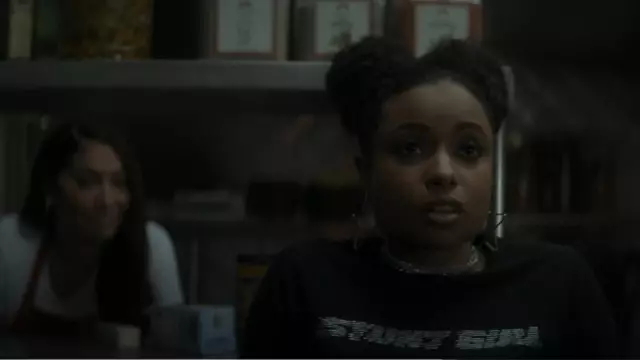 Marc Jacobs Black Heaven por Marc Jacobs 'Stunt Girl' Camiseta de bebé usada por Tiffany (Hannaha Hall) como se ve en The Chi (S04E06)