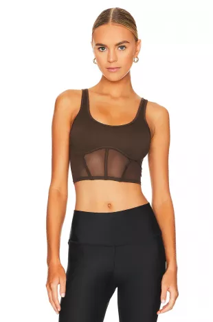 Alo Yoga Airbrush Mesh Corset Tank usado por Kiesha Williams (Birgundi Baker) como se ve en The Chi (S06E11)