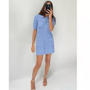 Mini vestido de punto con botones dorados de Zara usado por Phoebe Duncan (Molly Kunz) como se ve en The Irrational (T02E15)