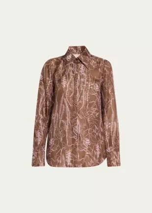 Blusa de seda con botones con estampado floral de Lafayette 148 New York usada por Mia Jordan (Karen Pittman) como se ve en The Morning Show (S04E05)