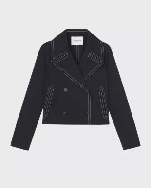 Lafayette 148 New York Chaqueta de doble botonadura con pespunte usada por Mia Jordan (Karen Pittman) como se ve en The Morning Show (S04E06)