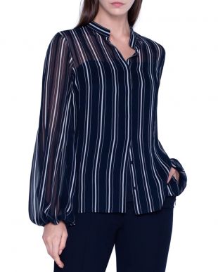 Blusa delantera de botones de seda a rayas a rayas usada por Kit Voss (Jane Leeves) como se ve en los atuendos del programa de televisión The Resident (S05E06)