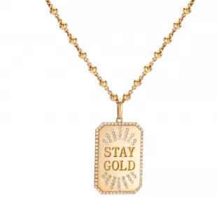 Colgante Luna Flo London Stay Gold usado por Chelsea (Aimee Lou Wood) como se ve en The White Lotus (S03E04)