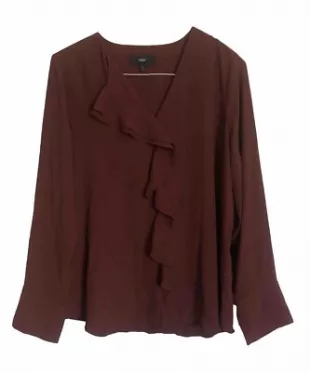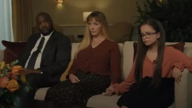 Blusa Mossimo con volantes en la parte delantera usada por Cynthia Mans (Christina Hendricks) como se ve en Good American Family (S01E07)