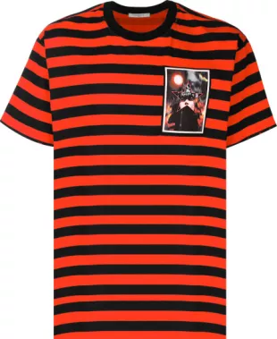 Camiseta con foto a rayas naranja y negra de Givenchy usada por Blac Youngsta en Blac Youngsta - Fondo (Video oficial)