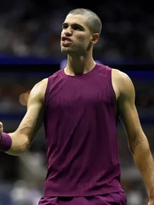 Camiseta sin mangas del US Open usada por Carlos Alcaraz en Carlos Alcaraz envió una advertencia de 'armas' por el próximo oponente del US Open