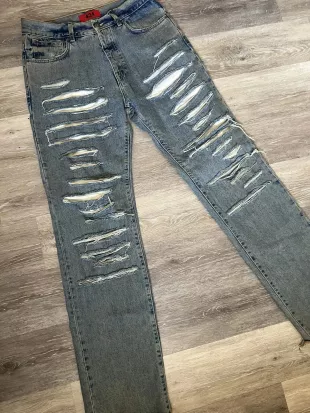 424 Vaqueros Washed Blue Slash-Destroyed usados por Chris Brown en Chris Brown - Residuals (Video Oficial)