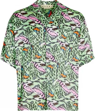 Camisa con estampado de serpiente verde Marni x Bruno Bozzetto usada por Denzel Curry en Denzel Curry - SPEEDBOAT (Video musical oficial)