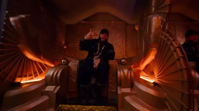 1017 ALYX 9SM Jeans negros con tiras y tachuelas usados por El Alfa en EL ALFA - HELICÓPTERO