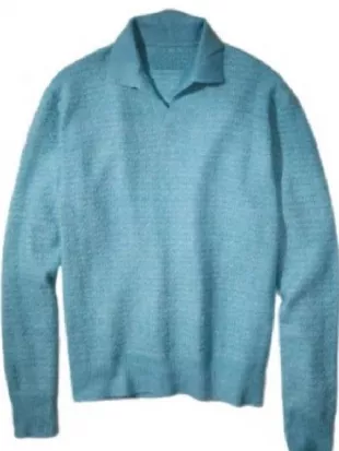 Suéter de polo azul cielo usado por Travis Kelce en Jason Kelce le pregunta a Travis Kelce cuándo es la boda en entrevista con Patrick Mahomes, Andy Reid