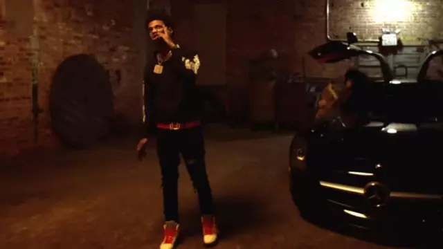 Jeans MX1 de acuarela negra y roja Amiri usados por A Boogie con capucha en J.I. - R&B Shit (feat. A Boogie Wit Da Hoodie) (Video musical oficial)