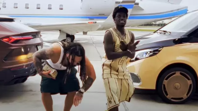Mitchell & Ness 1998-99 Toronto Raptors Pantalones cortos a rayas beige usados por Kodak Black en Kodak Black - Cyber Truck [Video oficial]