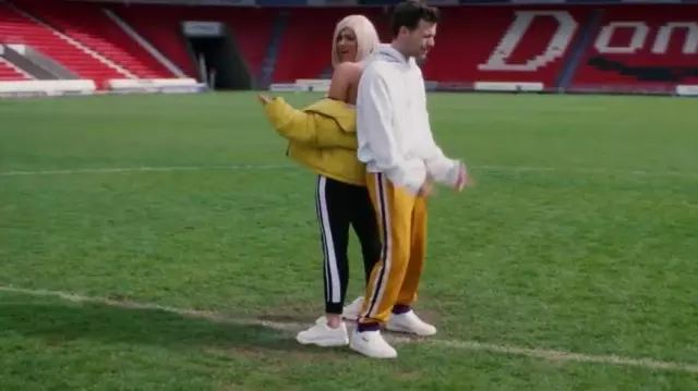 Los ilustradores de Bebe Rexha trotando en terciopelo en el video musical Back To You de Louis Tomlinson