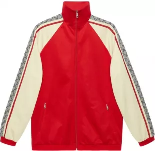 Chaqueta de chándal Gucci con mangas rojas y blancas GG Stripe usada por Blac Youngsta en Moneybagg Yo - 123 feat. Blac Youngsta (Video musical oficial) ft. Blac Youngsta