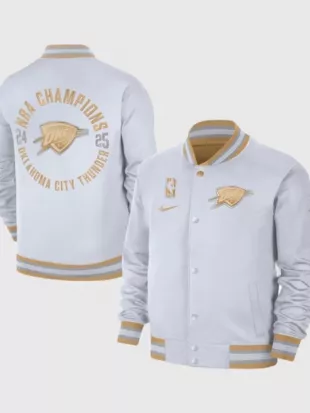Chaqueta de ceremonia de izamiento de la bandera de los campeones de las finales de OKC 2025 en SGA y OKC Thunder obtienen sus anillos de campeonato de la NBA 2025