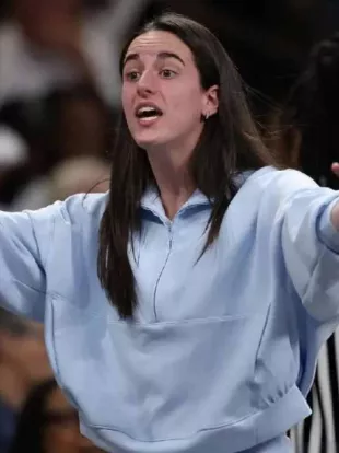 Chaqueta corta azul de ensueño usada por Caitlin Clark en Indiana Fever v Atlanta