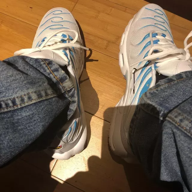 Les sneakers Nike Air Max Plus blanc et bleu de Zola sur son compte Instagram @binkszola