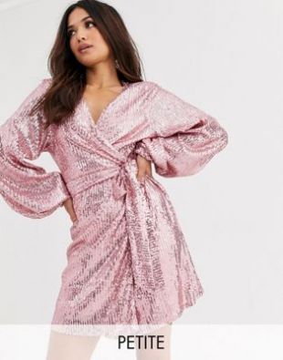Club L London Petite - Robe patineuse courte forme cache-cœur à sequins - Rose | ASOS