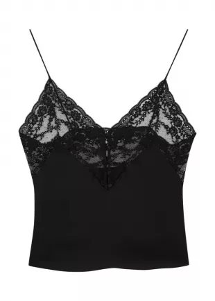 Caraco en dentelle et satin de soie Saint Laurent porté par Chrissy Teigen sur son post Instagram le 11 avril 2025