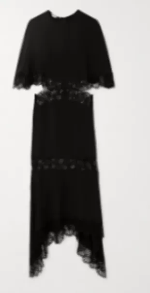 Stella McCartney Robe midi asymétrique en dentelle bordée de dentelle portée par Chrissy Teigen sur son Instagram le 14 août 2024