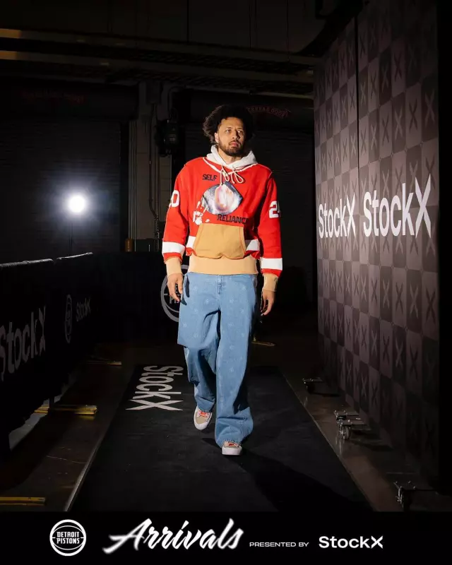Martine Rose Blue Allover Restricted Symbol Jeans porté par Cade Cunningham sur le compte Instagram @detroitpistons