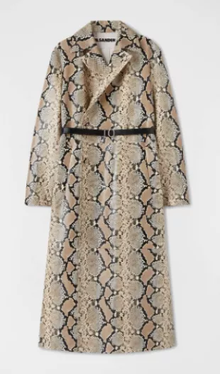 Manteau en cuir en peau de serpent Jil Sander porté par Dua Lipa aux studios CBS de New York le 12 décembre 2024