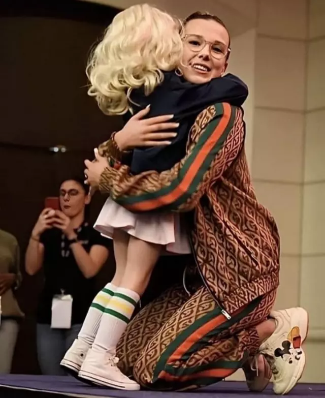 Le pantalon de survêtement Gucci porté par Millie Bobby Brown sur le compte Instagram de @milliebobbybrownsact