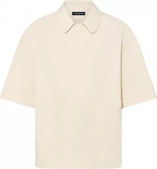Louis Vuitton Chemise de travail Monogram Panel crème portée par Patrick Mahomes II sur le compte Instagram @patrickmahomes