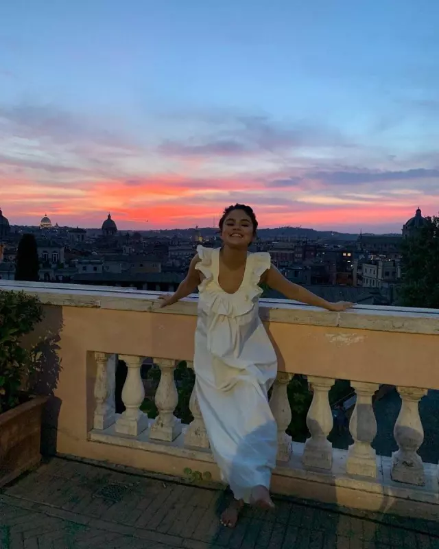 Les TROIS GRÂCES de LONDRES géraldine en mélange de coton robe maxi porté par Selena Gomez sur Instagram account @selenagomez