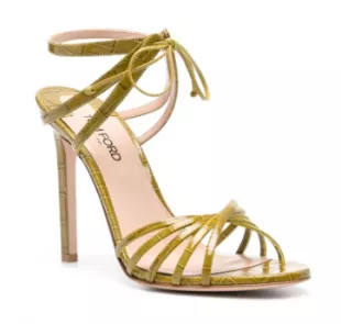 Sandales en cuir effet crocodile Angelica de Tom Ford portées par Selena Gomez au Vanity Fair en septembre 2024