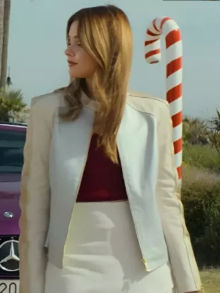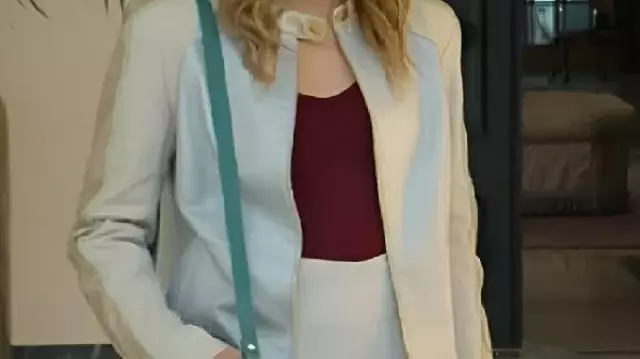 Blouson en cuir bleu ciel porté par Noah Morán (Nicole Wallace) dans Our Fault