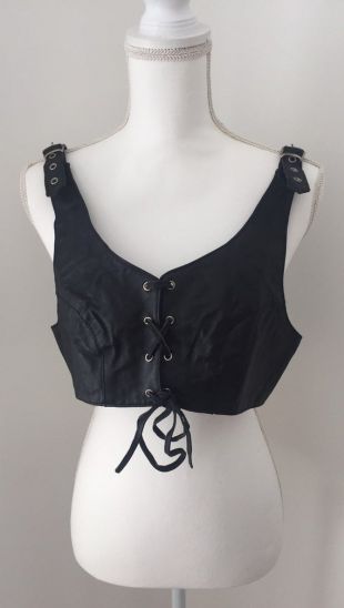 Women's Sexy PU Leather Crop Tank Tops Halter Lace Up Camisole Vest for Casual Party Festival Rave Black