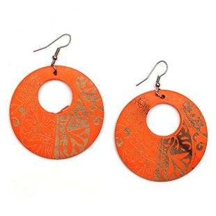 Idin Jewellery - Pendants ronds en bois gravés en orange avec motif tribal Boucles d'oreilles