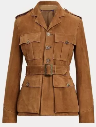 Veste ceinturée en daim marron portée par elle-même (Melania Trump) comme on le voit dans Melania