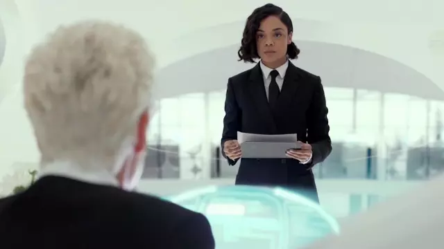 Le blazer noir porté par l'Agent M (Tessa Thompson) dans Men in Black : International